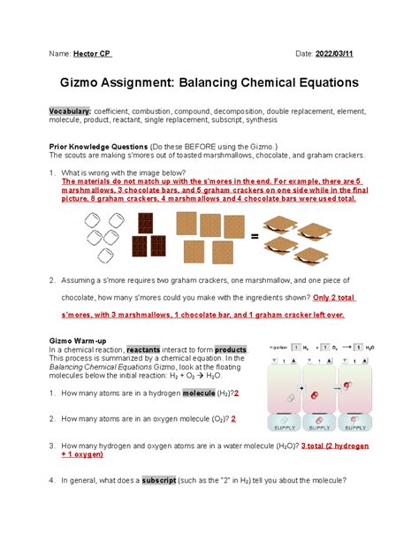 Download Balancing Chemical Equations Gizmo Answers Doc
